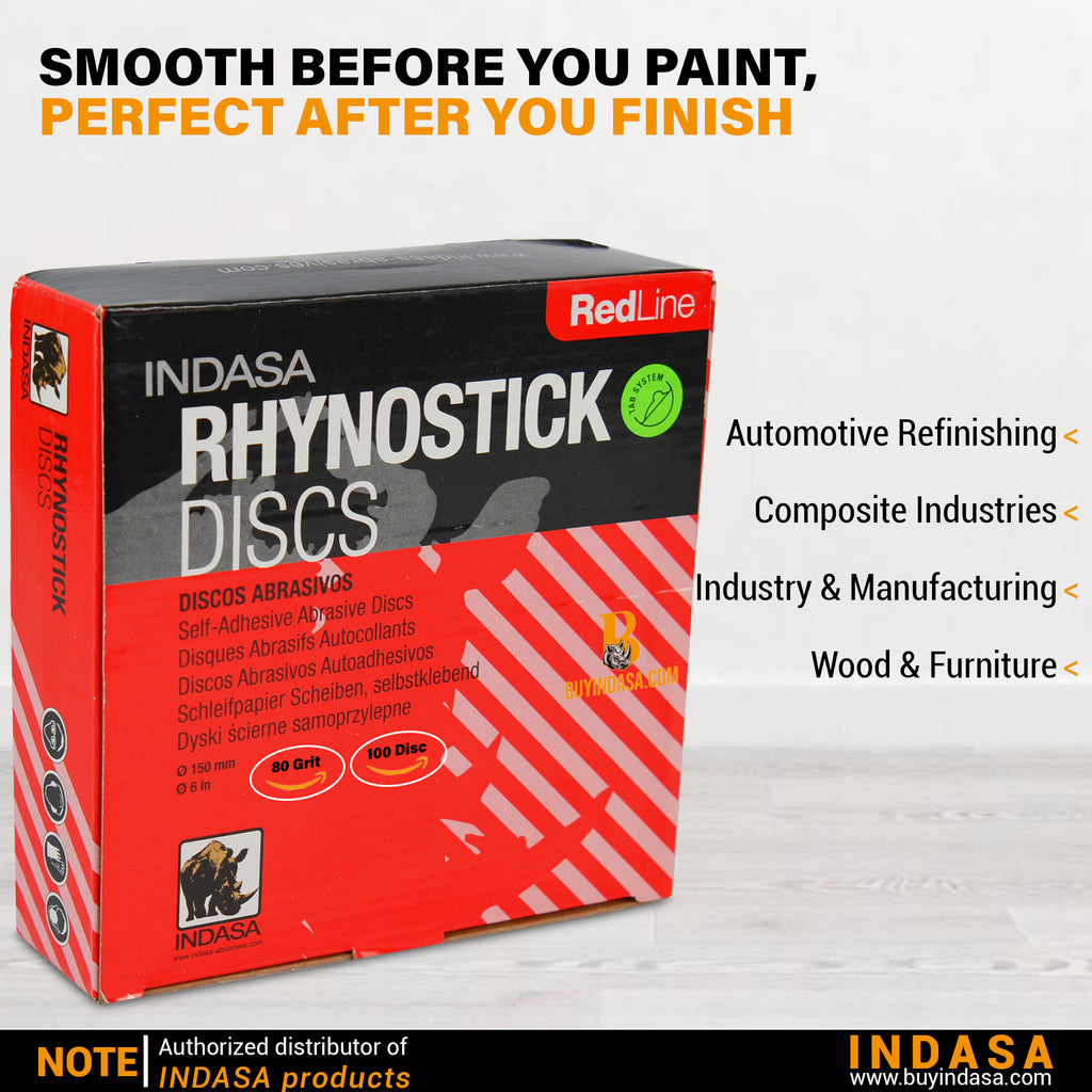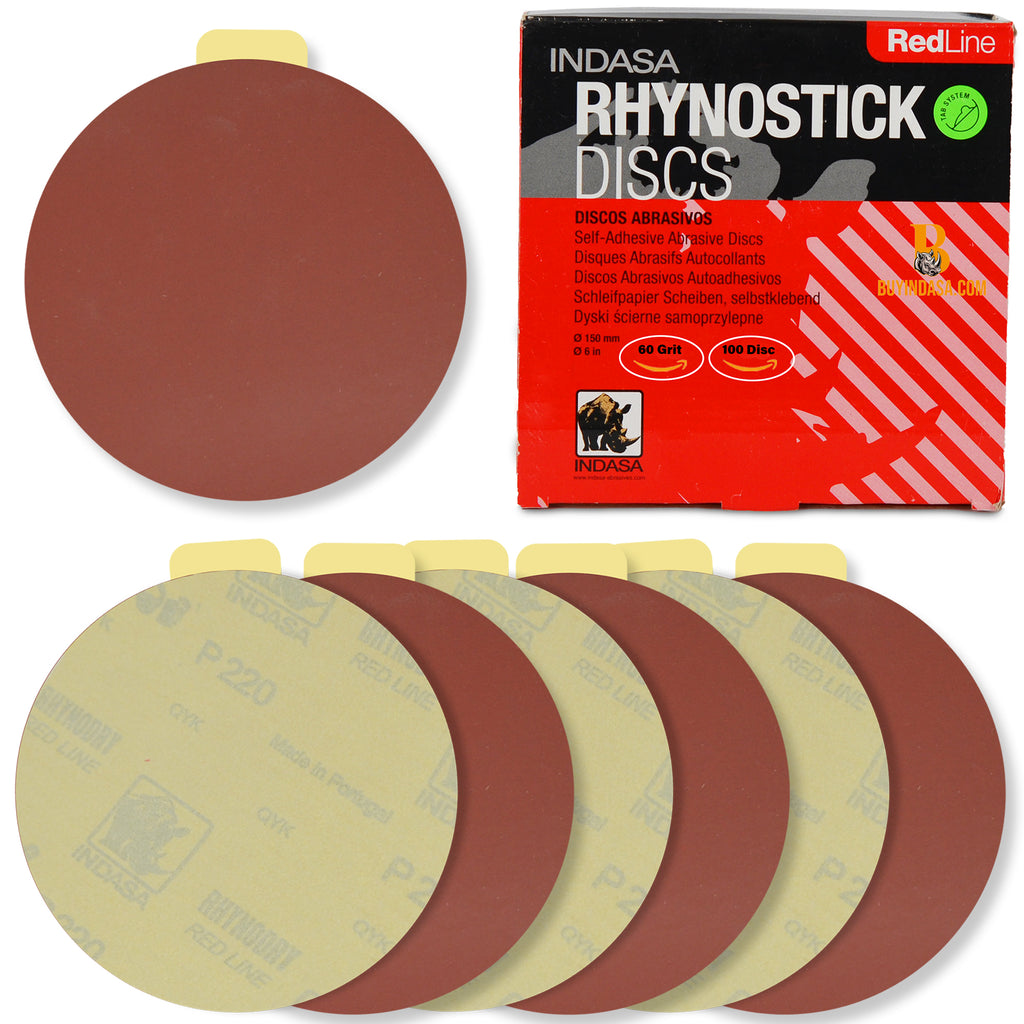 Choose Indasa's 6" Rhynostick Red Line Solid Sanding Discs (600 Series) for superior performance, versatility, and longevity in all your sanding projects.